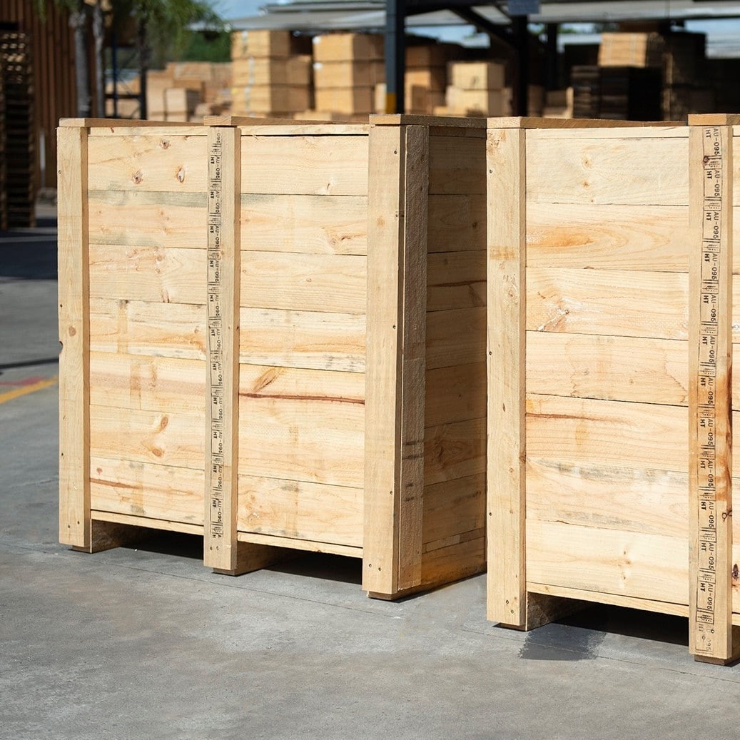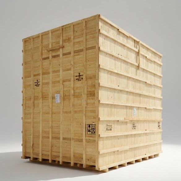 Heat-treated, export-compliant wooden packaging suitable for international shipments, preventing customs delays and rejections.