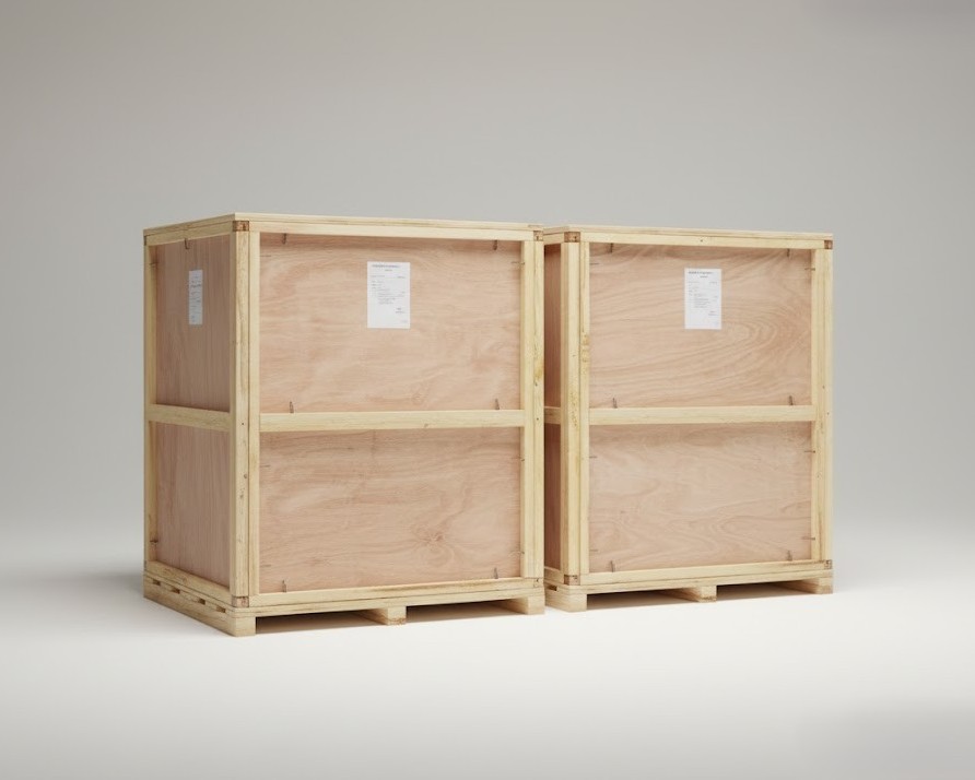Heat-treated, export-compliant wooden packaging suitable for international shipments, preventing customs delays and rejections.