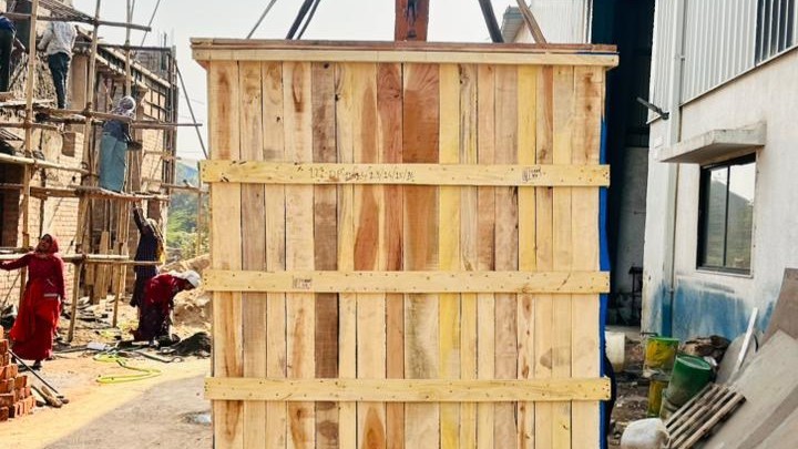 Heavy-duty wooden crating for construction equipment, tools, and hardware—ideal for transporting bulky, high-weight materials safely to project sites.